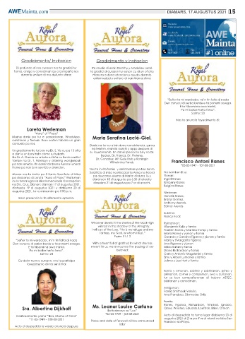 pa nan servicio. Un danki tambe na Aurora Funeral *03-05-1947 - †07-08-2021