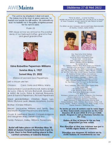 Left to mourn are her: Sr. Piet Peña y Sra. y yiunan na Sto Domingo