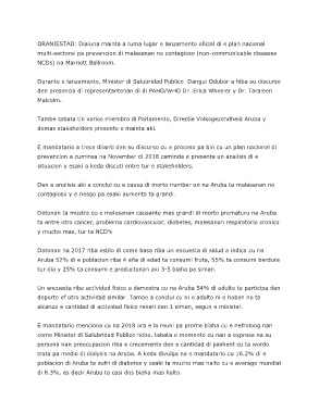 ORANJESTAD: Dialuna mainta a tuma lugar e lanzamento oficial di e plan nacional