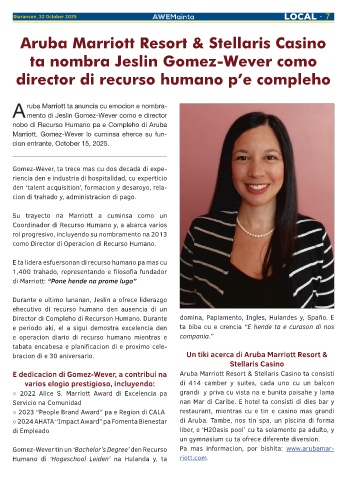 E dedicacion di Gomez-Wever, a contribui na Aruba Marriott Resort & Stellaris Casino ta consisti