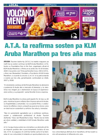 reafirma su sosten continuo na KLM Aruba Marathon. A.T.A.