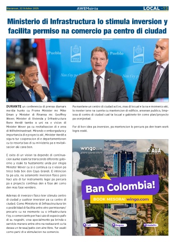 DURANTE un conferencia di prensa diamars Pa mantene un centro di ciudad activo, mas di locual e ta na e momento aki,