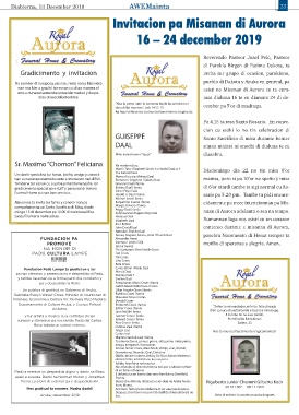 mingo 15 di december pa 10.00 di maintana Misa Subrinu/anan:Eugene Ray Daal anan di Aurora adelanta o sea na tempo.