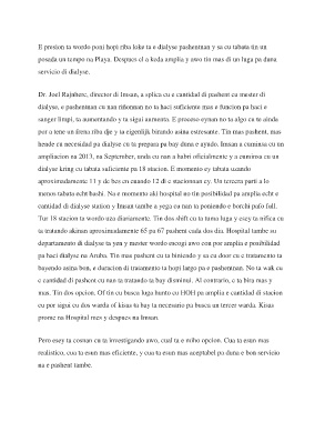 hende cu necesidad pa dialyse cu ta prepara pa bay duna e ayudo. Imsan a cuminsa cu un