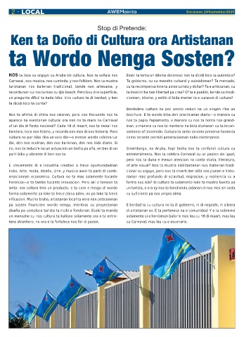 no, nos ta reduci’e na un actuacion un biaha pa aña, en bes di un Sinembargo, na Aruba, hopi biaha nos ta confundi cultura cu