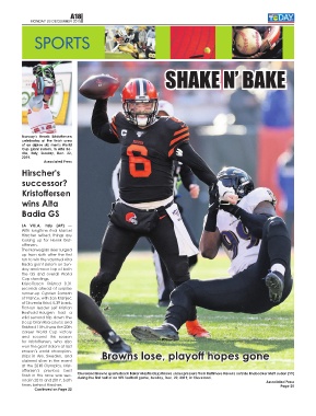 ships in Are, Sweden, and Browns lose, playoff hopes gone