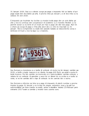 31 Januari 2020. Sea cu e cliente scoge pa paga e impuesto full un biaha of por