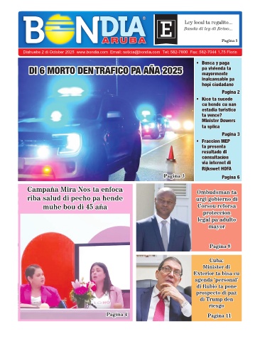 Diahuebs 2 di October 2025 www.bondia.com Email: noticia@bondia.com Tel: 582-7800 Fax: 582-7044 1,75 Florin