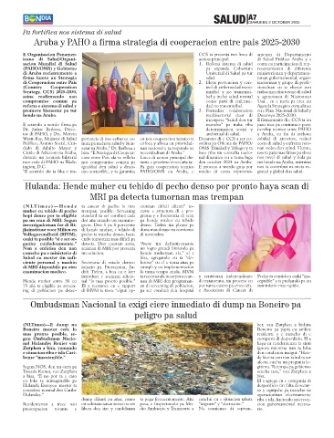 na e cede di PAHO na Wash- nos compromiso comun pa rante e proximo cinco aña ta: den october 2024 na Aruba. tur hende na Aruba, mientras