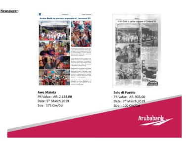 Newspaper: Awe Mainta Solo di Pueblo PR Value : Afl. 2.188,00 PR Value : Afl. 935,00 Date: 5 March,2019 Date: 5 March,2019 th th Size: 175 Cm/Col Size: 100 Cm/Col