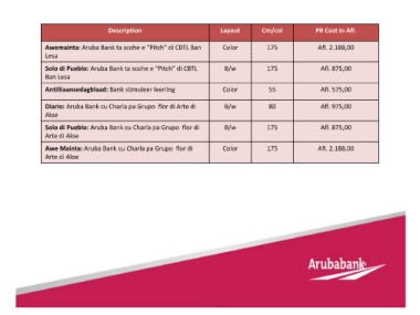 Solo di Pueblo: Aruba Bank ta scohe e “Pitch” di CBTL B/w 175 Afl. 875,00