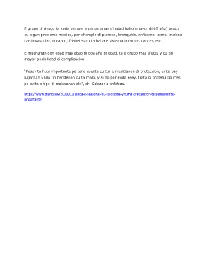 E grupo di riesgo ta keda semper e personanan di edad halto (mayor di 65 aña) asocia