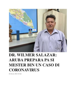 DR. WILMER SALAZAR: ARUBA PREPARA PA SI MESTER BIN UN CASO DI CORONAVIRUS 23 January, 2020, 8:24 pm 127