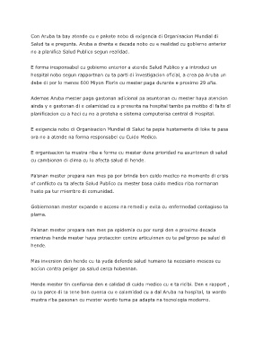 Salud ta e pregunta. Aruba a drenta e decada nobo cu e realidad cu gobierno anterior