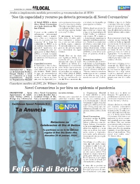 di Salud (WHO) a alerta curso pa detecta si un eventu- e ta reitera, no tin motibo pa Oduber a laga sa cu Aruba