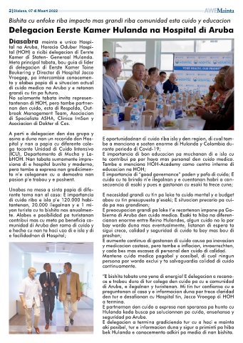 Delegacion Eerste Kamer Hulanda na Hospital di Aruba