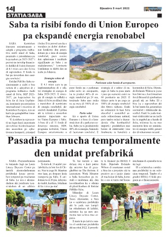 tá un logro hopi importante A base di e di 11 fondo di strukshon di e parkenan so- densia riba kombustibel Saba, miéntras ku na mes