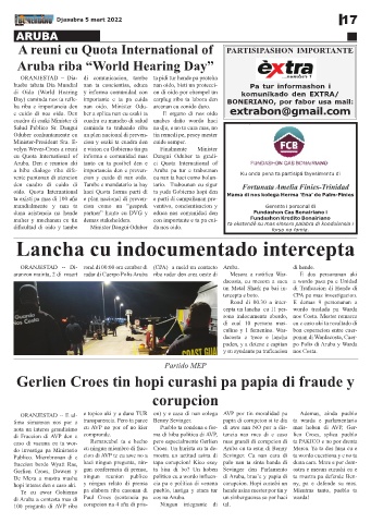 do investiga pa Ministerio cu ningun miembro di frac- Croes. Un hurista cu ta de- Aruba cu ta esun di Benny Merca. Ya ta dos luna cu e
