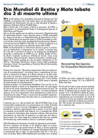 E peticion pa cu e dia mundial aki, World Wildlife Day, ta pa bel. Na Aruba nos tambe ta enfoca ari-