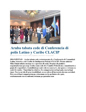 organisadornan pa scoge Aruba como cede di e Cumbre Policial aki, e mandatario a