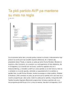 Kiesverordening, y mirando cu AVP ta e unico partido cu no kier tene su mes na