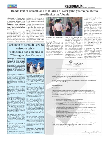 Parhanan di costa di Peru ta tende di a detecta un plan busca un contacto, pasobra e cuminda, y te awor un funda-