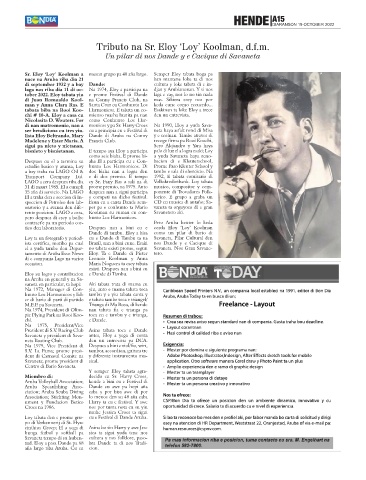 laga nos riba dia 11 di oc- Na 1974, Eloy a participa na djan y Arubianonan. Y si nos