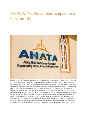 Aruba Hotel & Tourism Association (AHATA) ta acumula e cifranan di ocupacion
