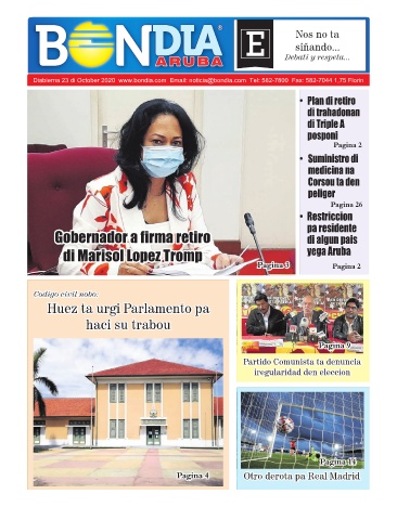 Diabierna 23 di October 2020 www.bondia.com Email: noticia@bondia.com Tel: 582-7800 Fax: 582-7044 1,75 Florin