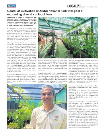 not the Aruba of the past, according to Nunes. plant species that we are focused on bringing these types of vegetation in the park. Some