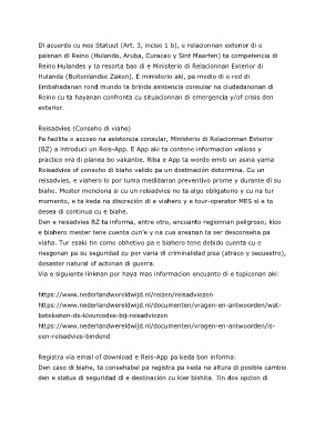 viaha. Tur esaki tin como obhetivo pa e biahero tene debido cuenta cu e
