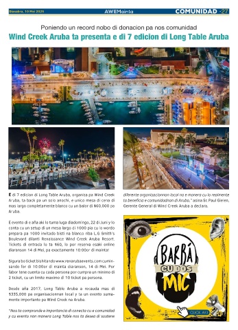 E di 7 edicion di Long Table Aruba, organisa pa Wind Creek                 diferente organisacionnan local na e manera cu lo realmente