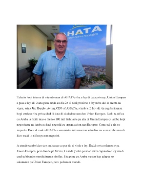 vigor, asina Jim Hepple, Acting CEO of AHATA, a indica. E ley aki tin regulacionnan