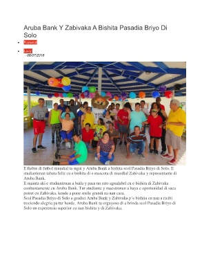 E fiebre di futbol mundial ta sigui y Aruba Bank a bishita scol Pasadia Briyo di Solo. E