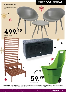 ➀ WOODEN PLANT STAIR 180 x 25 x 43 cm 299. 12000 Fun Miles 256616 ➁ OUTDOOR STORAGE BOX L 112 x B 48 x H 60 cm 139. 99