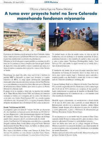 amplio den e proyecto aki of cu e desaroyado di e hotel. caminda tambe Evelyn lo tabata envolvi, pero cu nunca a haya