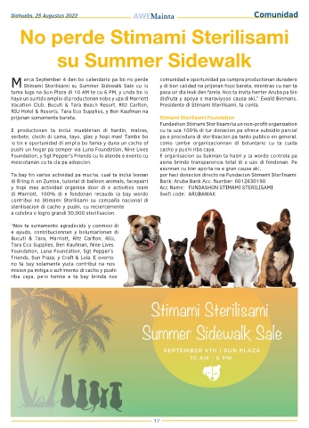 Ta bay tin varios actividad pa mucha, cual ta inclui lesnan por haci donacion directo na Fundacion Stimami Sterilisami: