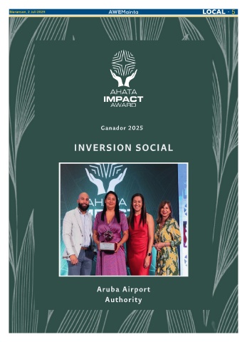 Diaranson, 2 Juli 2025 AWEMainta LOCAL 5 Ganador 2025 INVERSION SOCIAL Aruba Airport Authority
