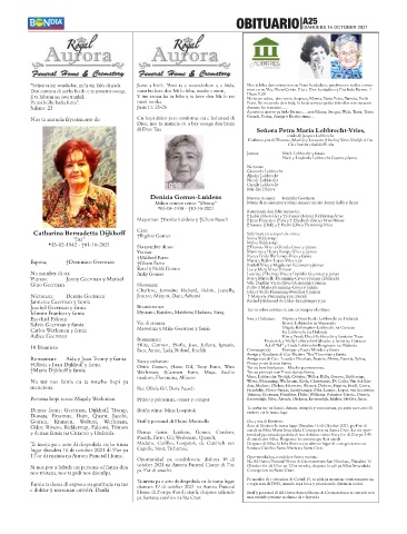 Si nos por a lubida un persona of famia den october 2021 na Aurora Funeral Home di 7’or Oktober for di 10’or pa 12’or merdia, despues lo sali pa Misa Imaculada