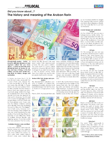 In Aruba, we know the 5, 10, 25 Aruban bills: their design and sym- ued. of mosaic, as well as a beach plant