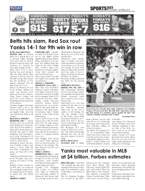 Betts went 4 for 4, scor- pitched a scoreless eighth. gave up three runs, five hits