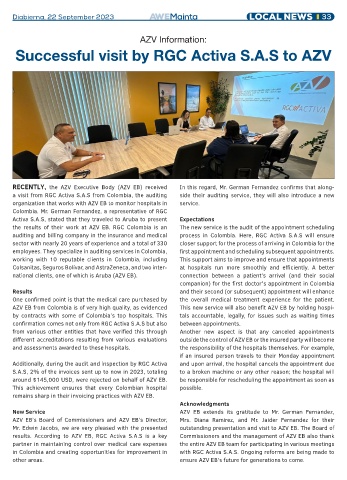 the results of their work at AZV EB. RGC Colombia is an The new service is the audit of the appointment scheduling