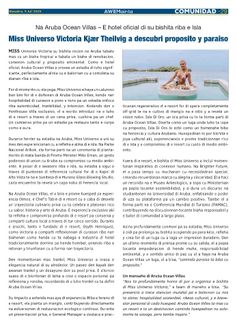 poderoso di union cu Aruba su compromiso cu medio ambi- Fuera di e resort, e bishita di Miss Universo a inclui momen-
