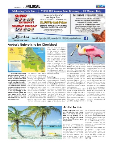 tle who lays his eggs on the and fun activities is available. and other native flora and a part of what Aruba’s na- island and all beaches in