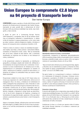 (CEF-Transport), e programa clave di UE pa sostene desa-