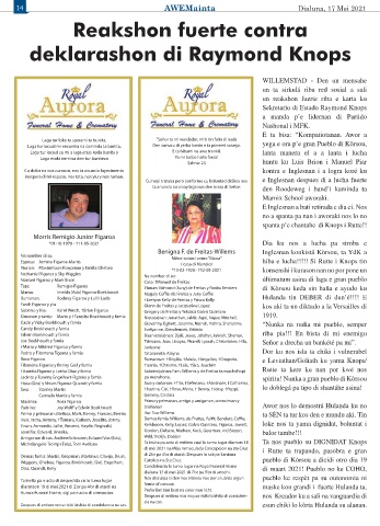 Wiggens, Ghebea, Figaroa, Boekhoudt, Giel, Engelhart, Catolico na Sta Cruz. pueblo di Kòrsou a dicidi otro dia 19