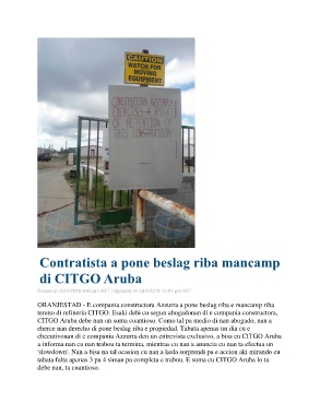 tereno di refineria CITGO. Esaki debi cu segun abogadonan di e compania constructora,