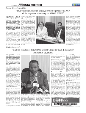 ORANJESTAD - AVP a Leoncita 10 mil florin pa luna MEP tin un plan con pa for-