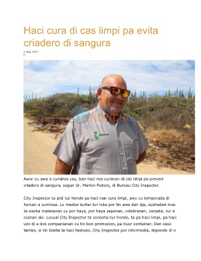 cosnan aki. Locual City Inspector ta conseha tur hende, ta pa haci limpi, pa haci