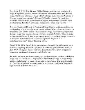 duro p'e wega final pa asina bay cu e victoria contra S.V. RCA. "Boso lo mira